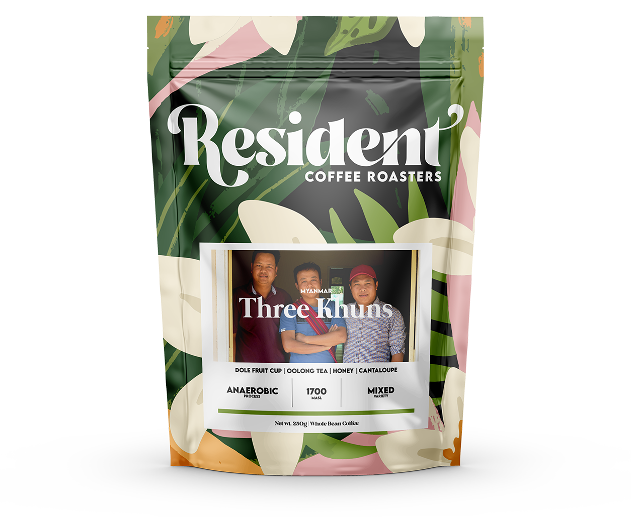 Three Khuns Anaerobic Lot is a distinctive coffee from Indigo Mountain in Hopong, Myanmar. Grown at elevations ranging from 1,158 to 1,737 meters, this coffee is a blend of Catuai and Caturra varieties processed through an anaerobic natural method.